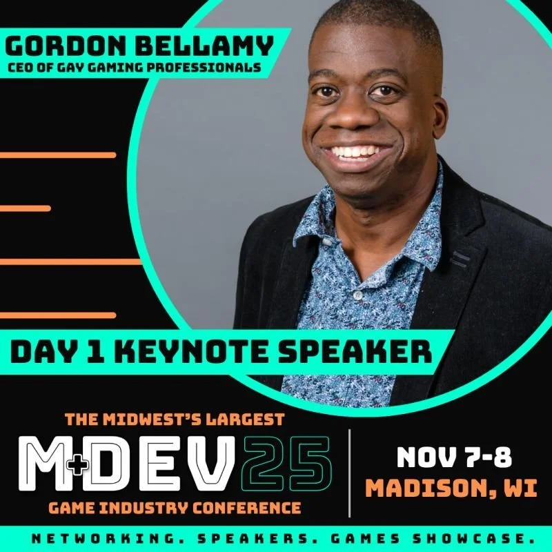 Madison, WI - October 7th, 2024 - The Wisconsin Games Alliance has announced that Gordon Bellamy, Executive Director / CEO of the Gay Gaming Professionals, board member of Directors of Wave, and Director of Cinematic Ethics at USC, will be a keynote speaker at MDEV 2025—the 7th edition of this premier event for games industry professionals. The event will take place on November 7-8th, 2025, in Madison, Wisconsin.